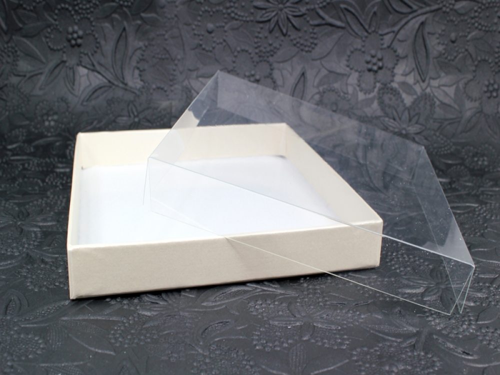 Square Clear Lid Hard Off White Metallic Invitation Box
